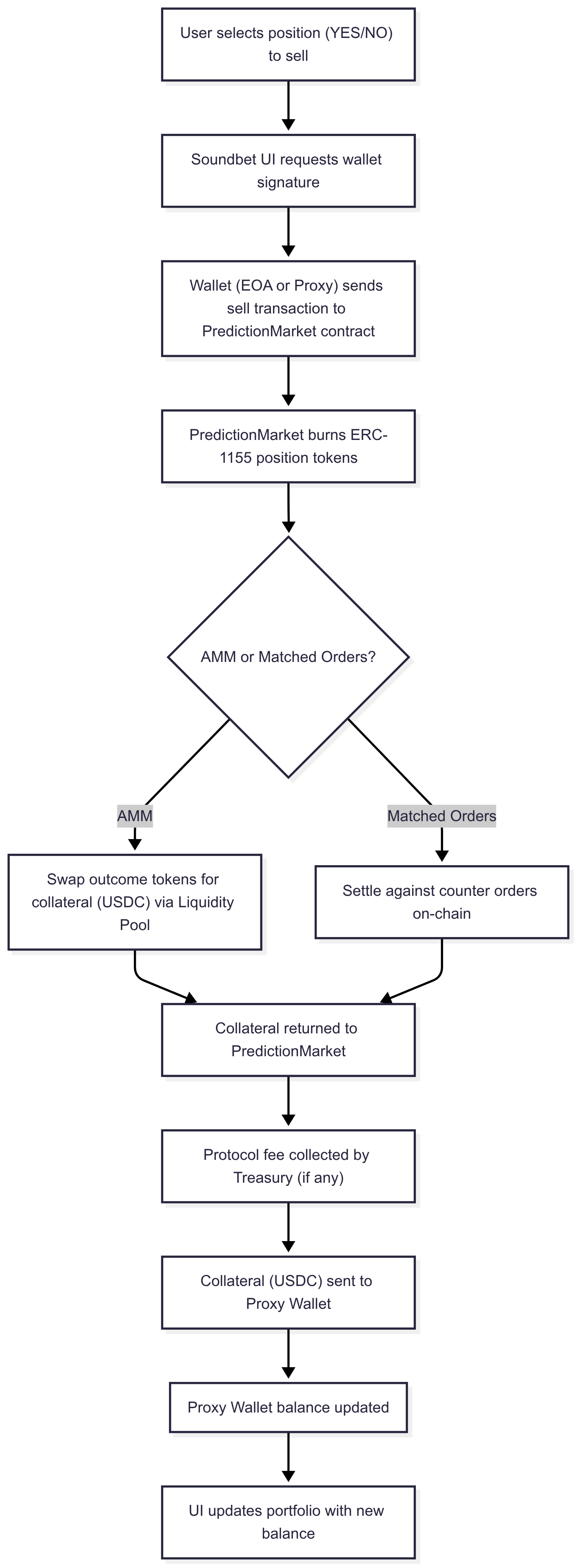 sell()transaction to the PredictionMarket smart contract on Polygon. - This transaction includes: